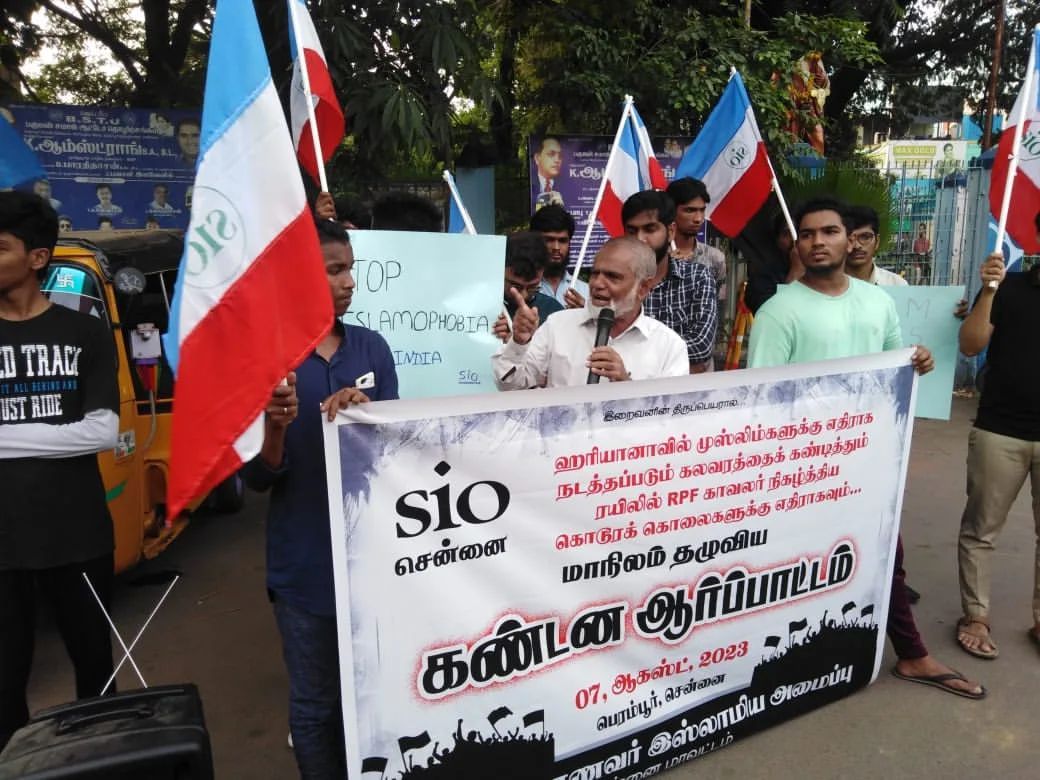 ஹரியானாவில் முஸ்லிம்களுக்கு எதிராக நடத்தப்படும் கலவரத்தைக் கண்டித்தும், ரயிலில் RPF காவலர் நடத்திய கொடூரக் கொலைகளுக்கு எதிராகவும்  தமிழகத்தின் பல்வேறு பகுதிகளில்  கண்டன ஆர்ப்பாட்டம் நடைப்பெற்றது.